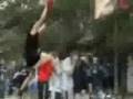 Description: this small (6 feet tall) young white man dunks the ball in any possible ways: between the legs, over 4 people, 360, windmill etc. |